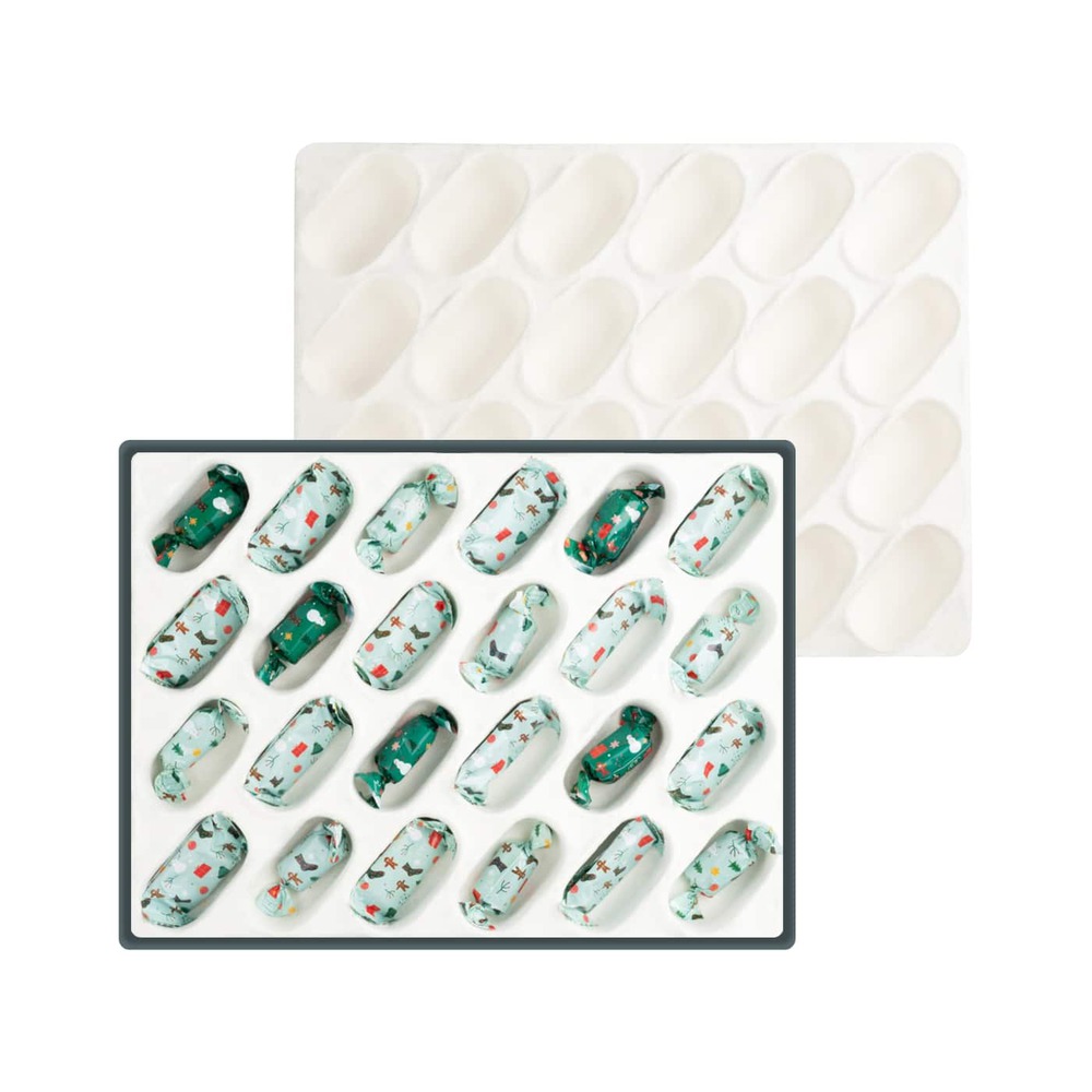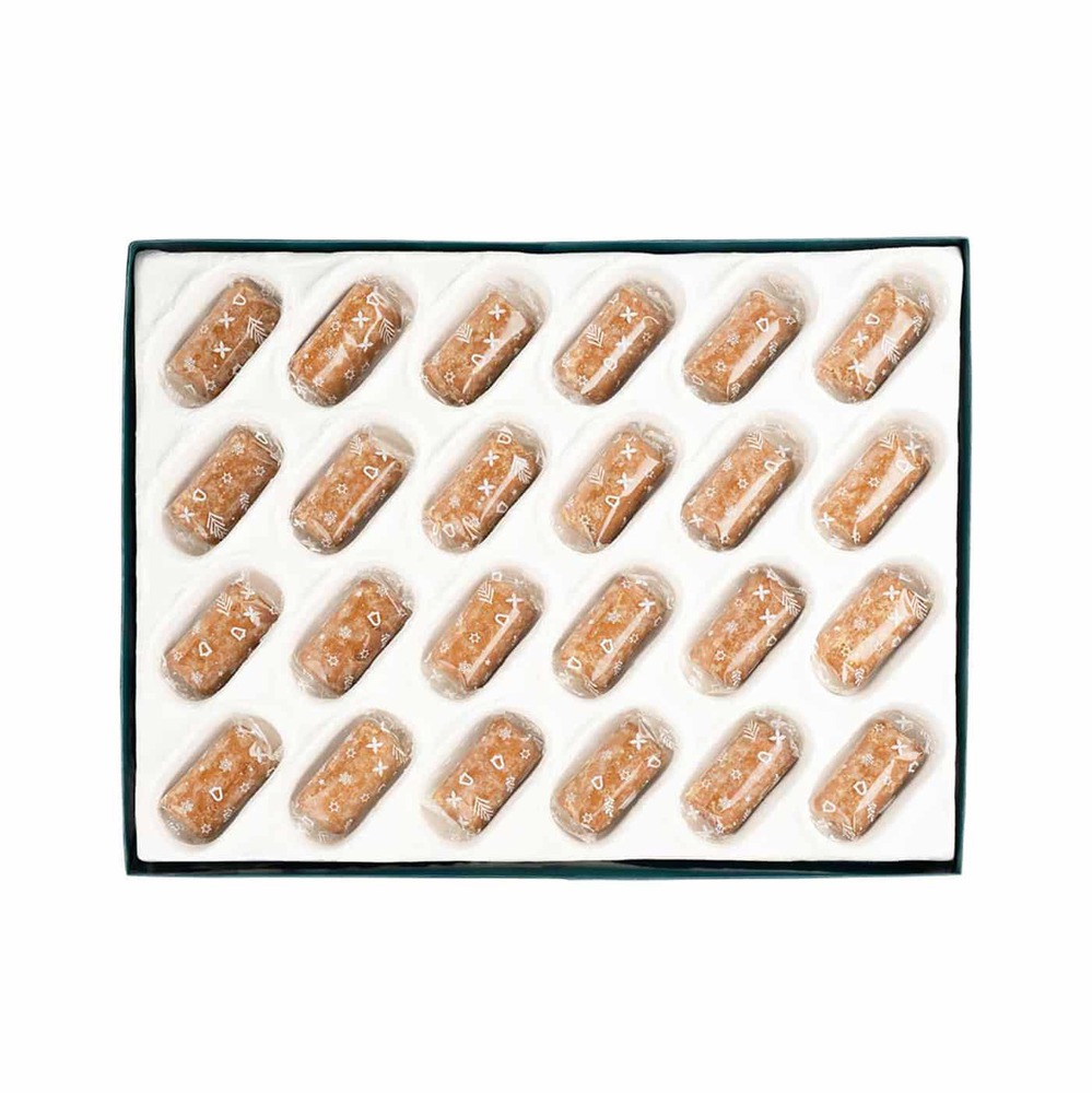 Duży kalendarz 406x305x35 mm z mixem czekoladowych trufli, karmelizowanych ciasteczek korzennych i pierników w lukrze cytrynowym. Każde okienko kryje smakołyk adwentowy.