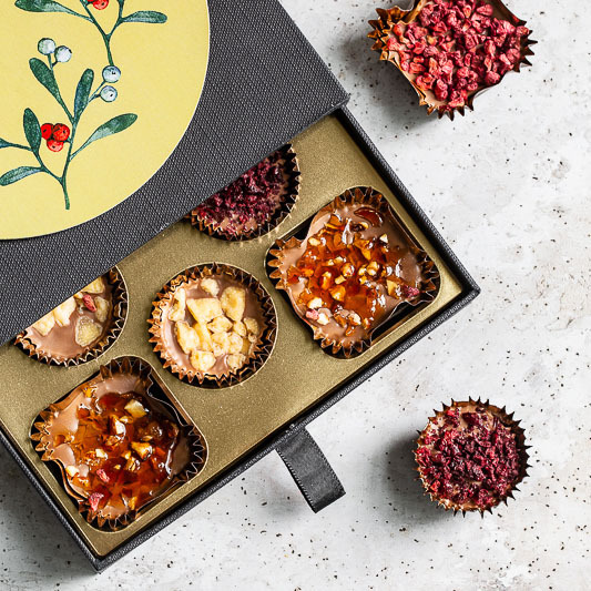 Prime Gold Cups to elegancka bombonierka, która zachwyci każdego obdarowanego. Zestaw zawiera 12 nadziewanych pralinek z czekolady klasy gourmet.