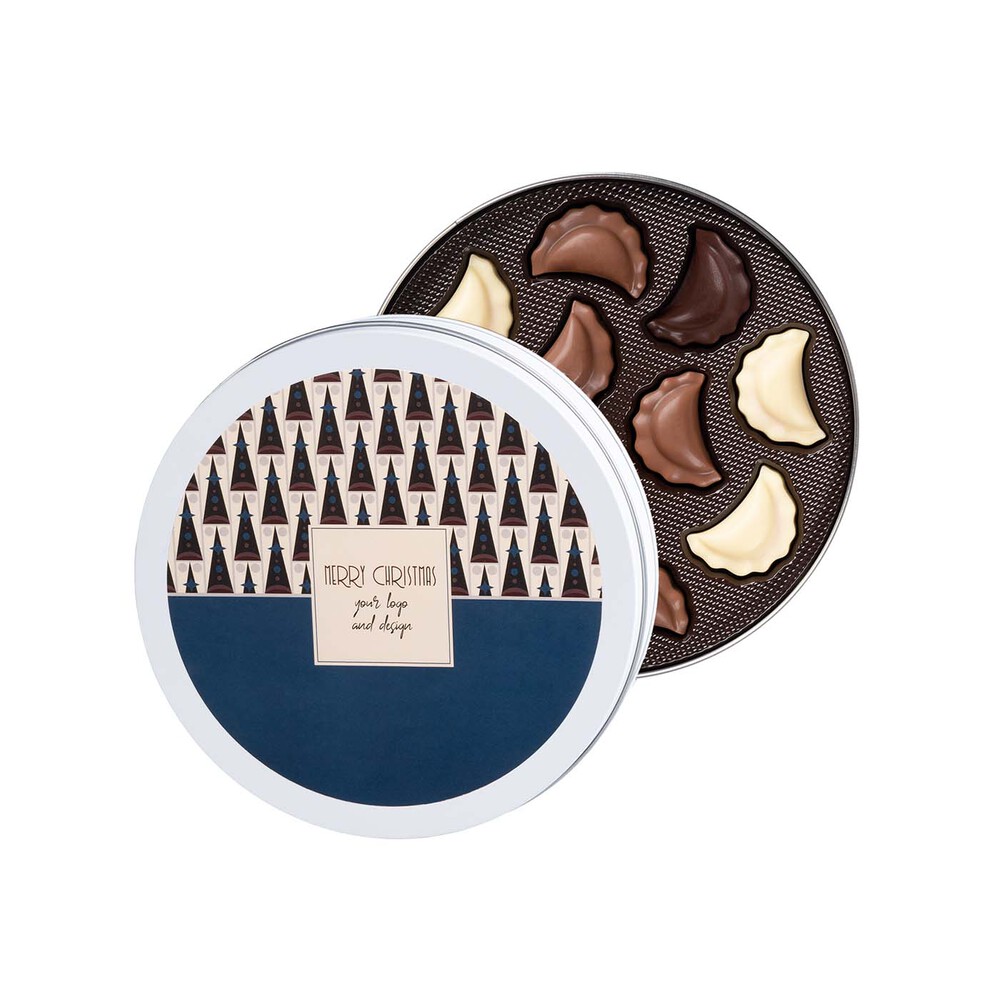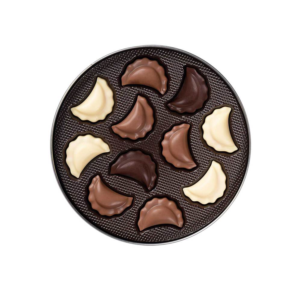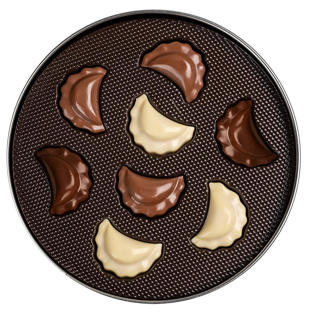Praliny Słodkie Pierogi to wyjątkowy zestaw 11 czekoladek w kształcie pierogów. Eleganckie i nietypowe, idealne na prezent biznesowy lub świąteczny.