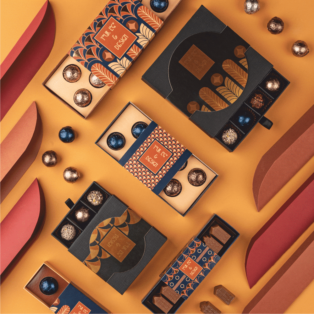 PRALINY SWEET SPHERE GRAND MOMENTS to prestiżowy prezent firmowy na święta. Zestaw zawiera 16 pralinek: 8 czekoladek z nadzieniem i 8 trufli Art Deco, wyróżniających się elegancją i doskonałym smakiem.