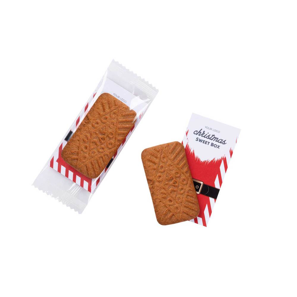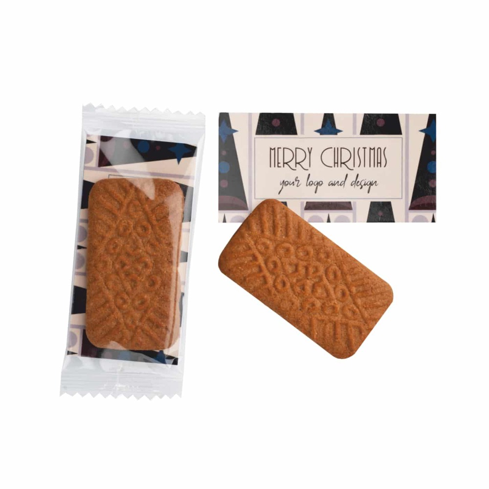 Chrupiące ciastko korzenne – idealna świąteczna słodycz na spotkania z klientami. Papierowy karnecik można spersonalizować grafiką, zdjęciem, hasłem lub tekstem, a na czekoladzie wytłoczyć logo Twojej marki.