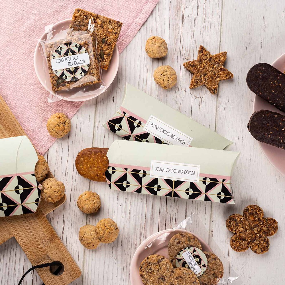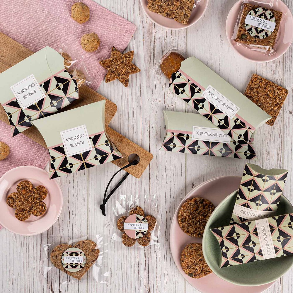Ekologiczne opakowanie: folia kompostowalna. Etykieta FSC do personalizacji – biały lub kraft – na logo, grafikę, zdjęcie, hasło lub życzenia. Druk cyfrowy zapewnia wysoką jakość.