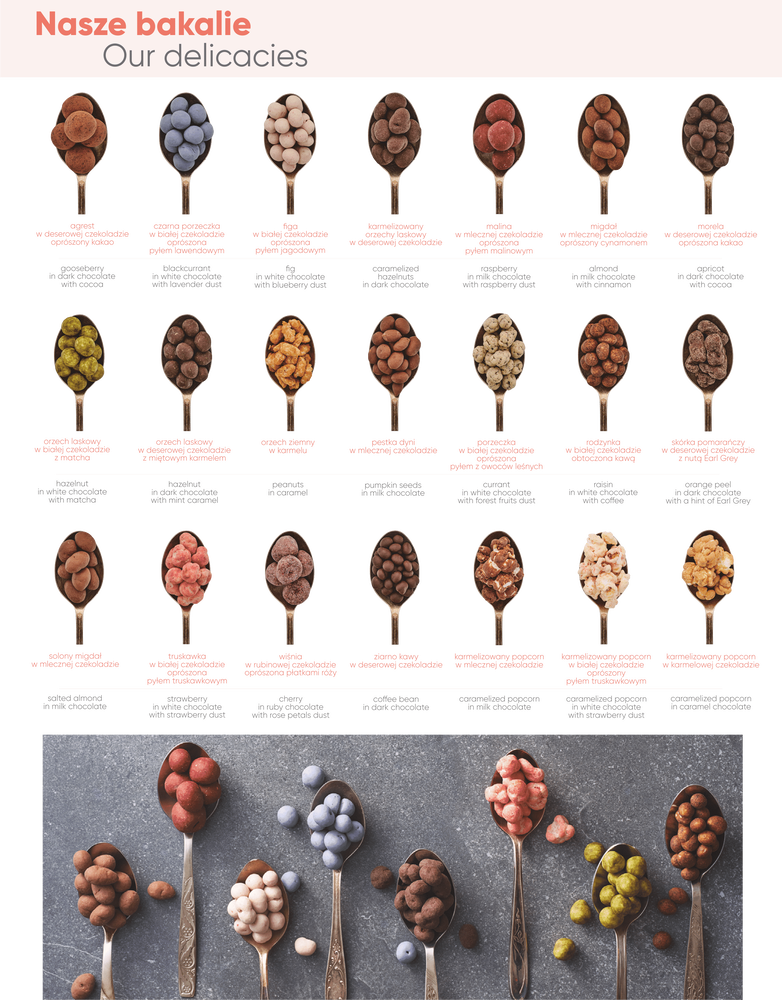 Słodycze produkowane rzemieślniczo ze składników najwyższej jakości, pochodzących ze zrównoważonych źródeł. Papierowa etykieta w kolorze białym lub kraft może być w pełni spersonalizowana – logo, grafika lub claim.