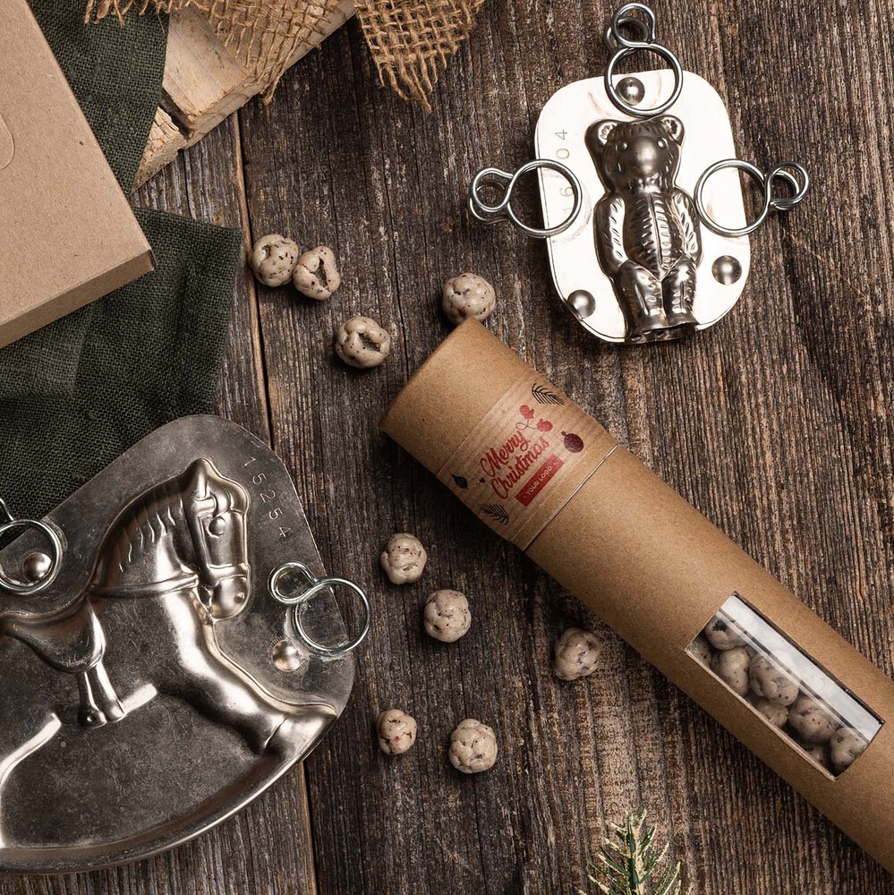 Unikalna tuba kraft z okienkiem odkrywa słodką tajemnicę – bakaliowe szaleństwo:
