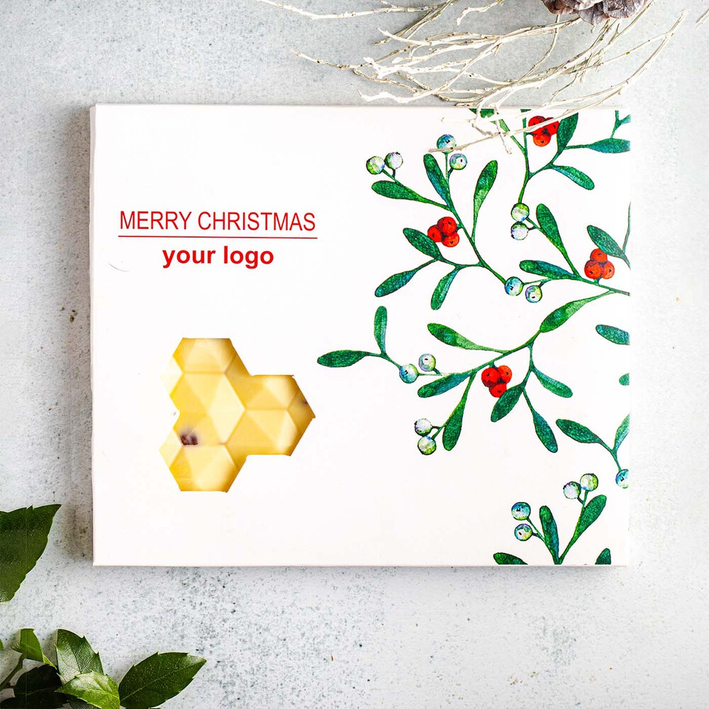 - Możliwość pełnej personalizacji: logo, życzenia świąteczne lub grafika,