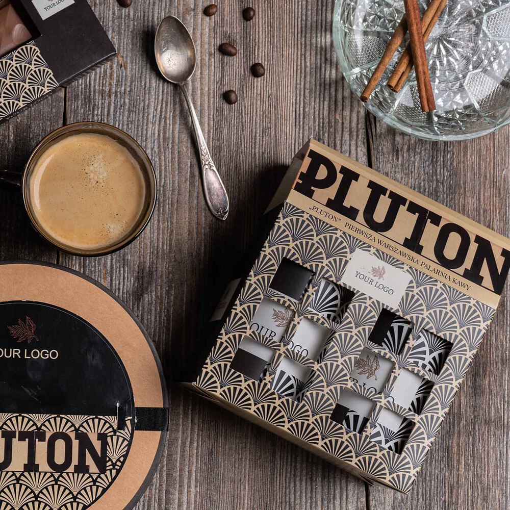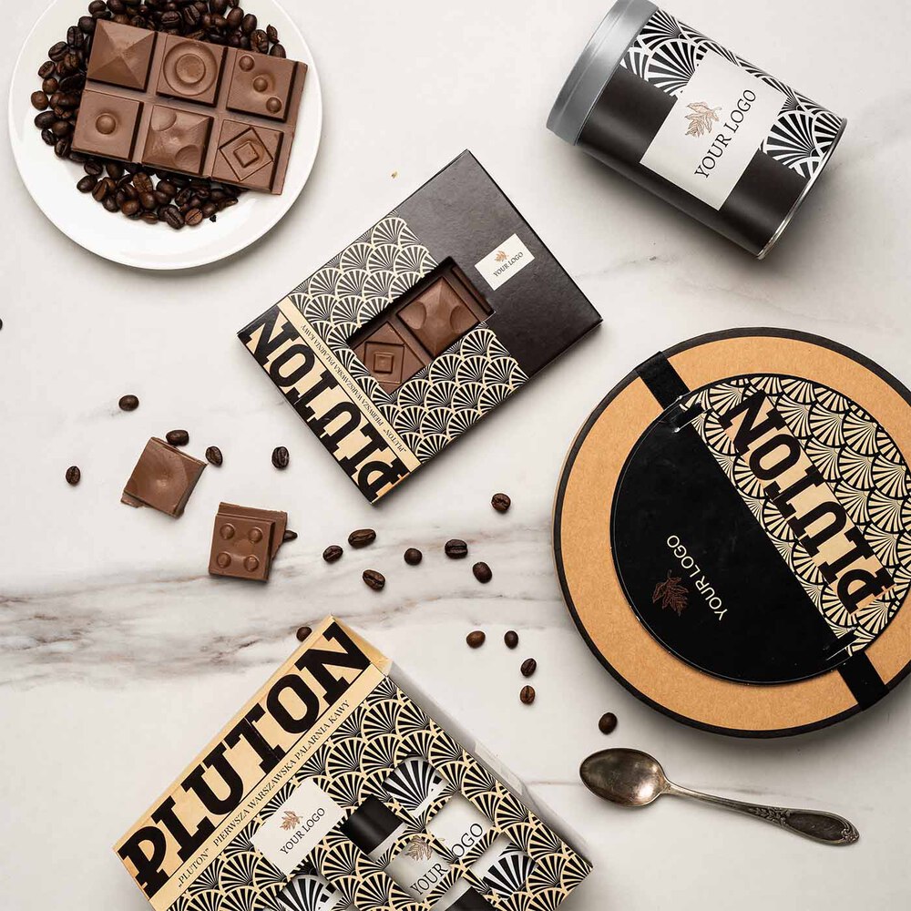 Zestaw z aromatyczną kawą Pluton i pysznymi ciasteczkami w czekoladzie to idealny prezent do budowania pozytywnych relacji biznesowych.