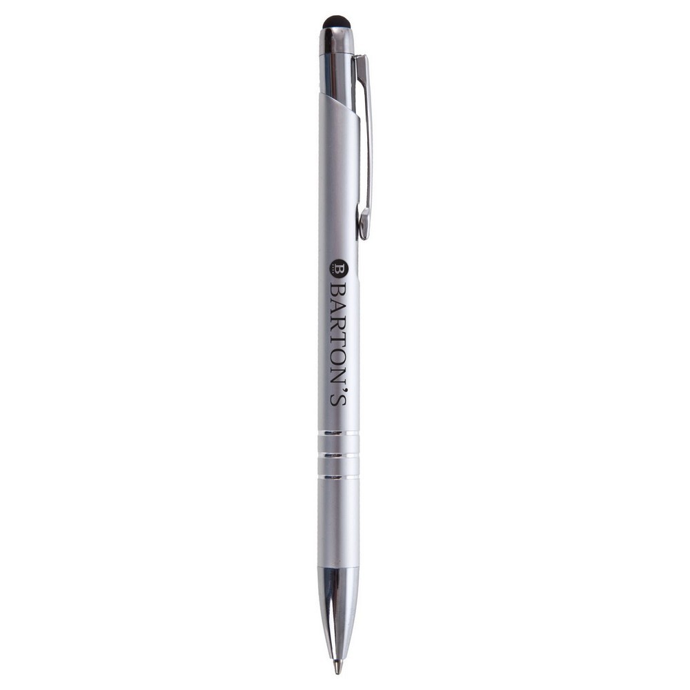 Długopis, touch pen z czarną, gumową końcówką, kolorowym trzonem i srebrnymi elementami