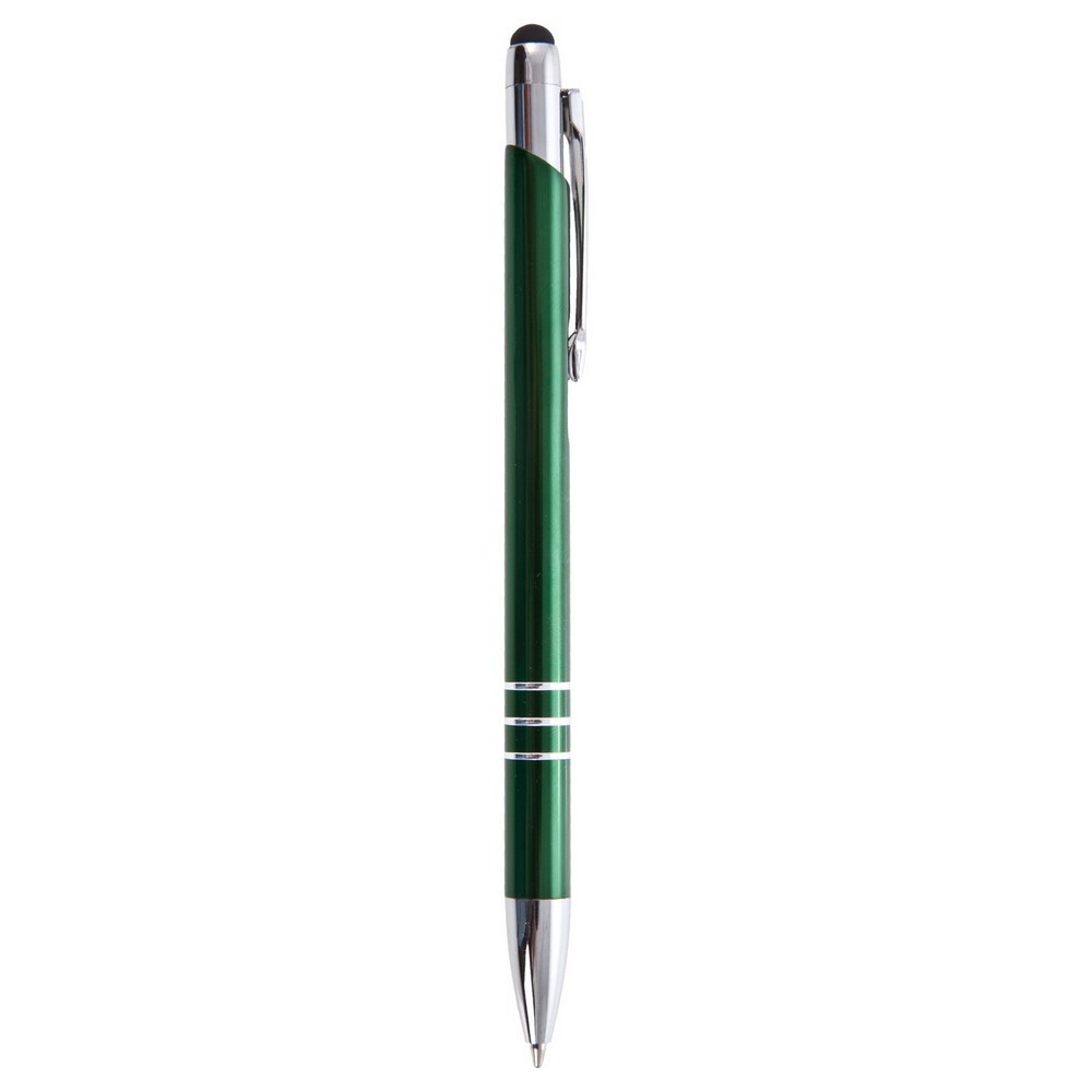 Długopis, touch pen z czarną, gumową końcówką, kolorowym trzonem i srebrnymi elementami