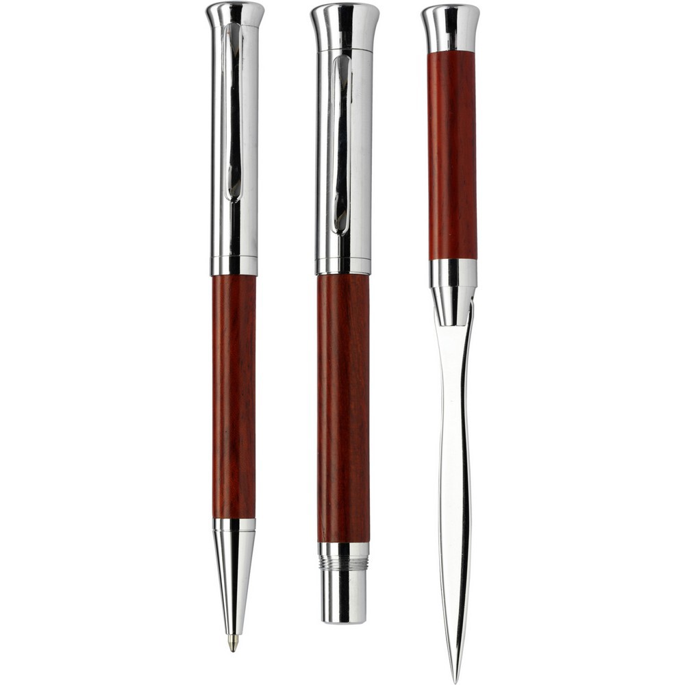 Zestaw piśmienniczy, długopis, pióro wieczne i nóż do otwierania listów / Drewno