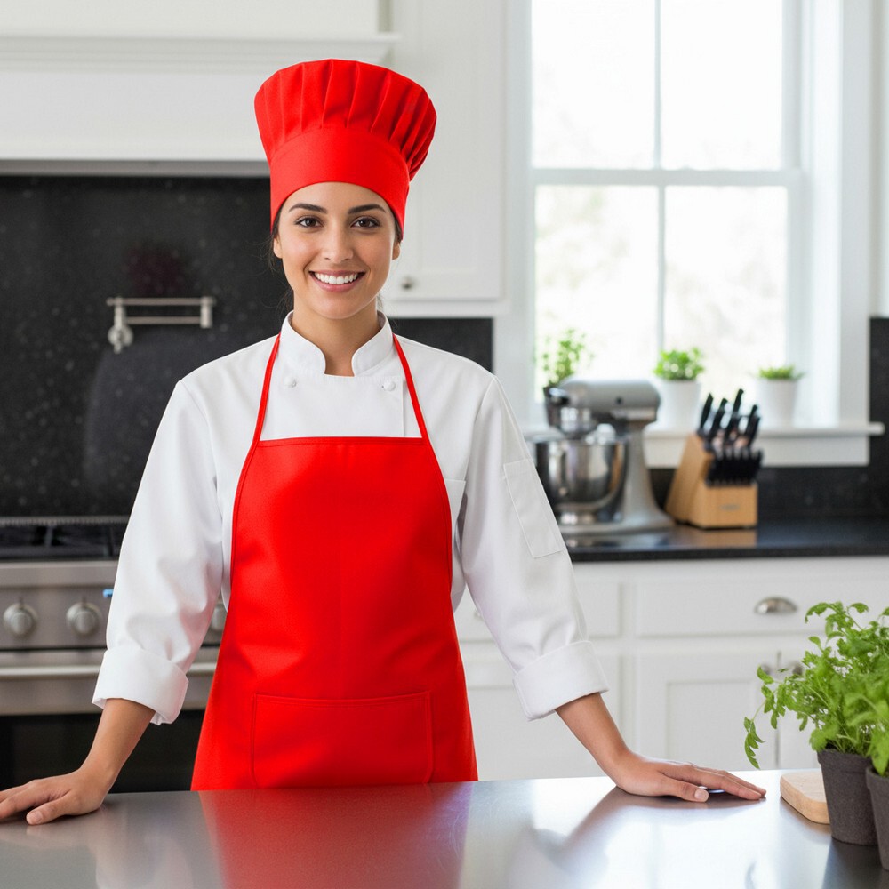 Zestaw małego kucharza, fartuch kuchenny i czapka kucharska, rozmiar dziecięcy | Nedina / Czerwony
