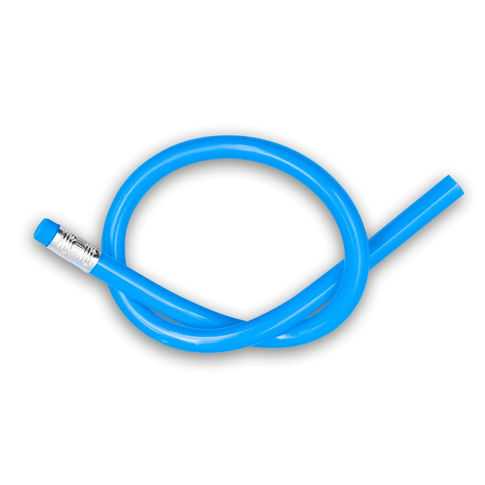 Długi, elastyczny ołówek z błyszczącym wykończeniem i dopasowaną kolorystycznie gumką, giętka budowa odznacza się większą odpornością na złamanie oraz może pomóc w rozładowaniu stresu, końcówka nie jest naostrzona, produkt wykonany z PVC