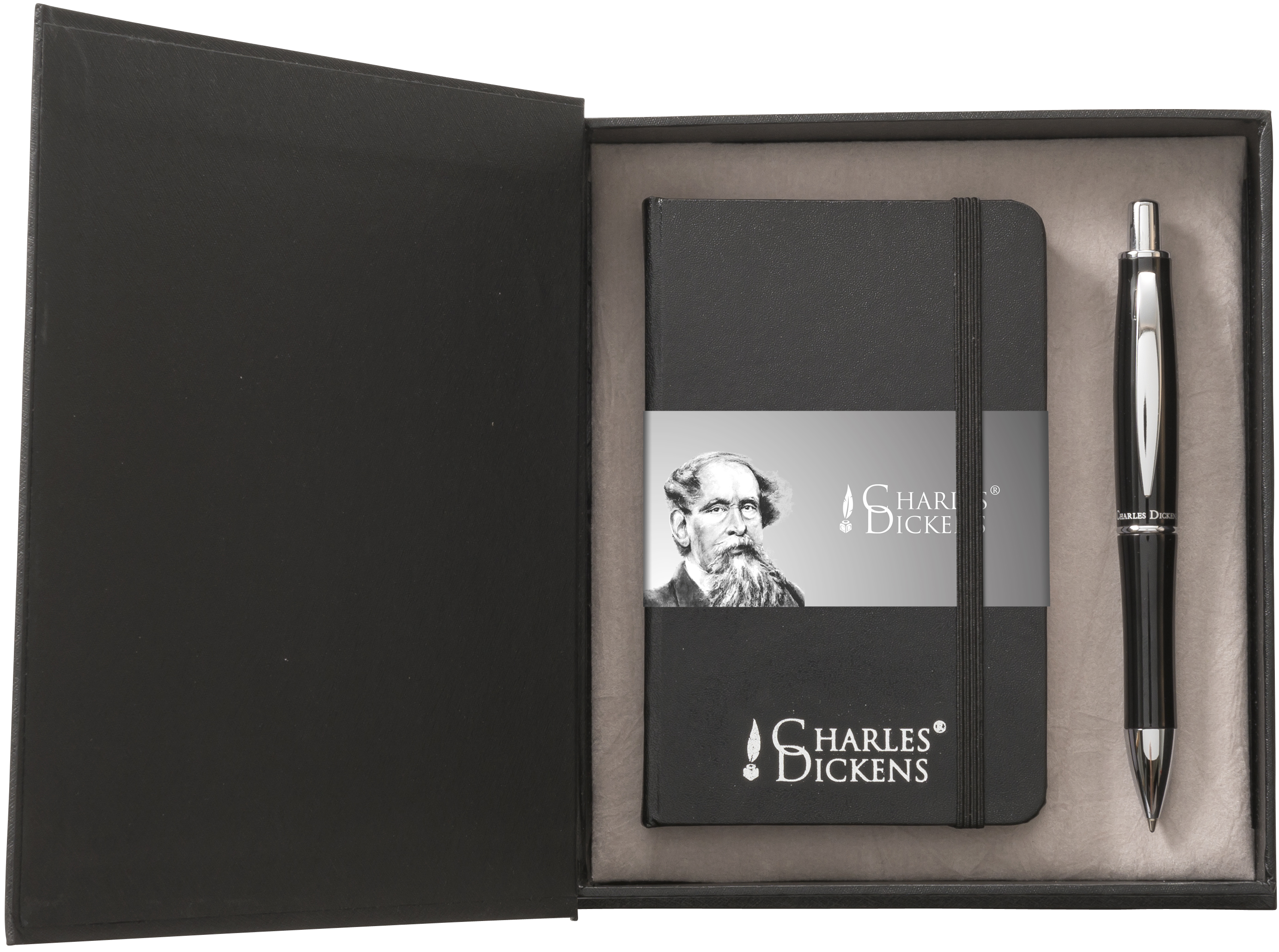 Zestaw upominkowy Charles Dickens, notatnik z długopisem / Czarny