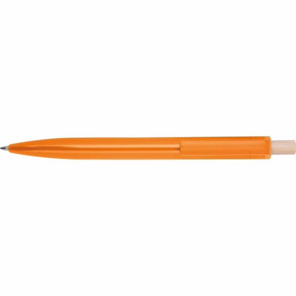 Długopis Boa Vista to połączenie prostoty i świadomego wyboru materiałów. Korpus wykonano z recyklingowego ABS, co sprawia, że jest odporny i trwały, a jednocześnie wpisuje się w ideę recyklingu. To subtelny gest w stronę zrównoważonego stylu życia.Wyjątkowy akcent stanowi bambusowy przycisk, który dodaje naturalnej elegancji i ciepła całemu projektowi. Wkład długopisu w kolorze niebieskim zapewnia wyrazistość pisma i płynność działań.Ten prosty, ale efektowny długopis świetnie sprawdzi się jako codzienne narzędzie do notatek albo jako ekologiczny gadżet reklamowy, który łączy estetykę z funkcjonalnością.