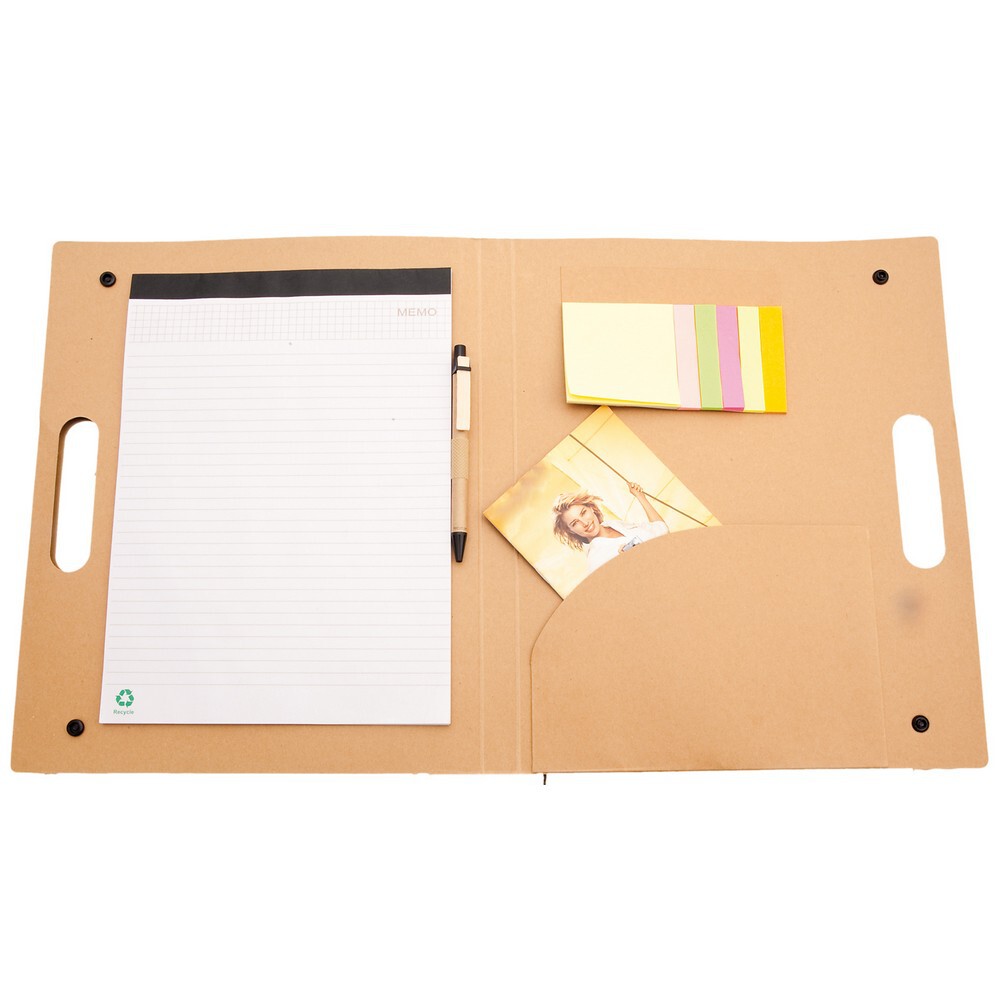 Teczka konferencyjna z notatnikiem (20 kartek w linie, jednostronnie), długopis, 25 karteczek samoprzylepnych (7,4 x 7,4 cm), 125 karteczek samoprzylepnych (7,5 x 1,5 cm)