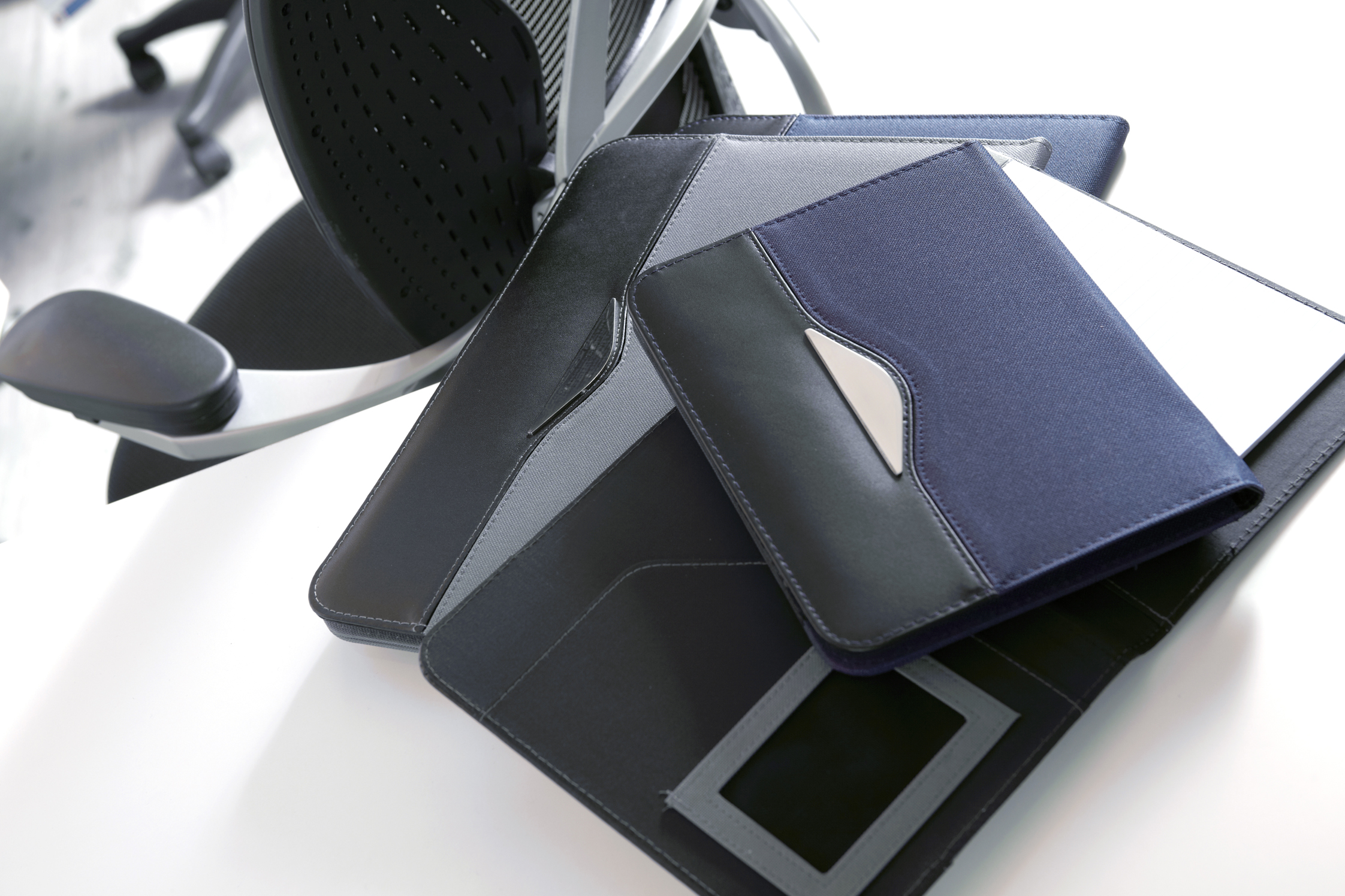 Teczka konferencyjna A4 z notatnikiem (30 kartek w linie), 2 duże kieszenie wewnętrzne, 2 kieszenie na wizytówki, miejsce na długopis, bez długopisu