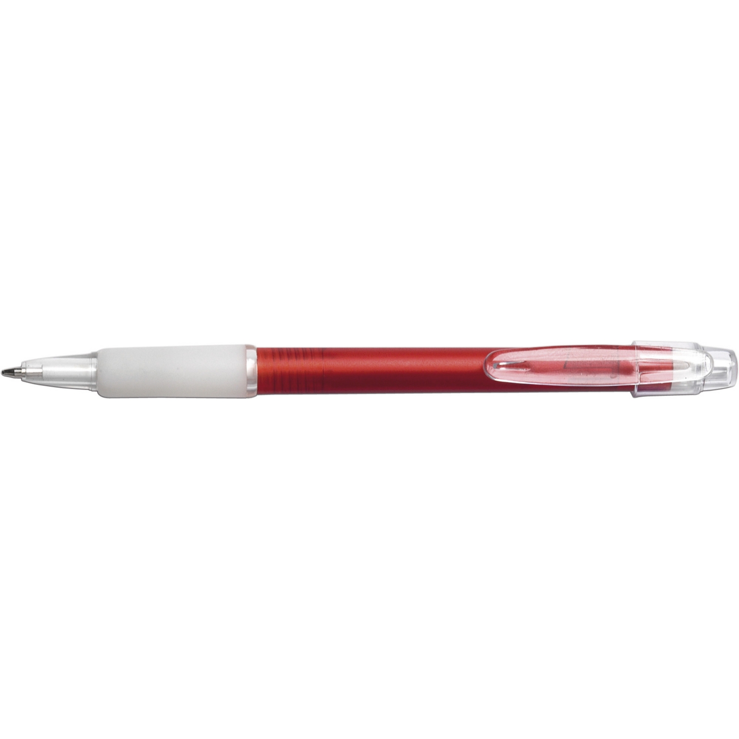 Długopis z gumowym uchwytem, kolorowym trzonem i półprzezroczystym klipem