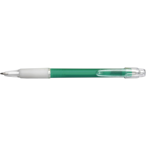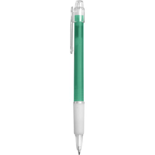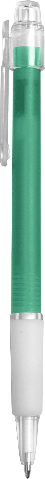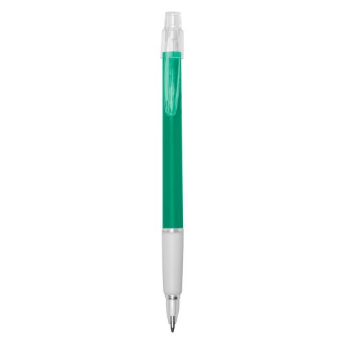 Długopis z gumowym uchwytem, kolorowym trzonem i półprzezroczystym klipem
