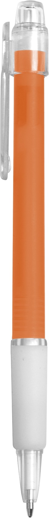 Długopis z gumowym uchwytem, kolorowym trzonem i półprzezroczystym klipem