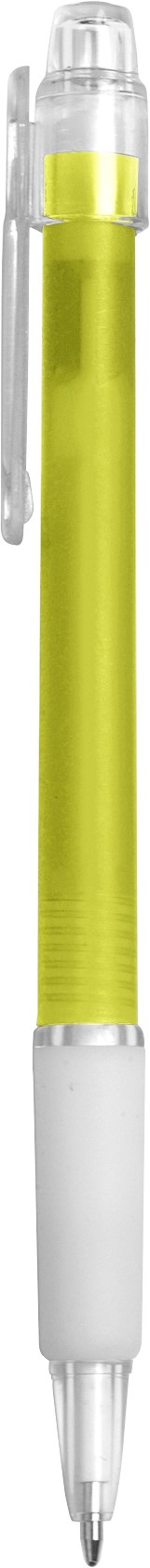 Długopis z gumowym uchwytem, kolorowym trzonem i półprzezroczystym klipem