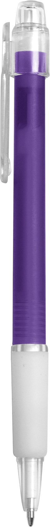 Długopis z gumowym uchwytem, kolorowym trzonem i półprzezroczystym klipem
