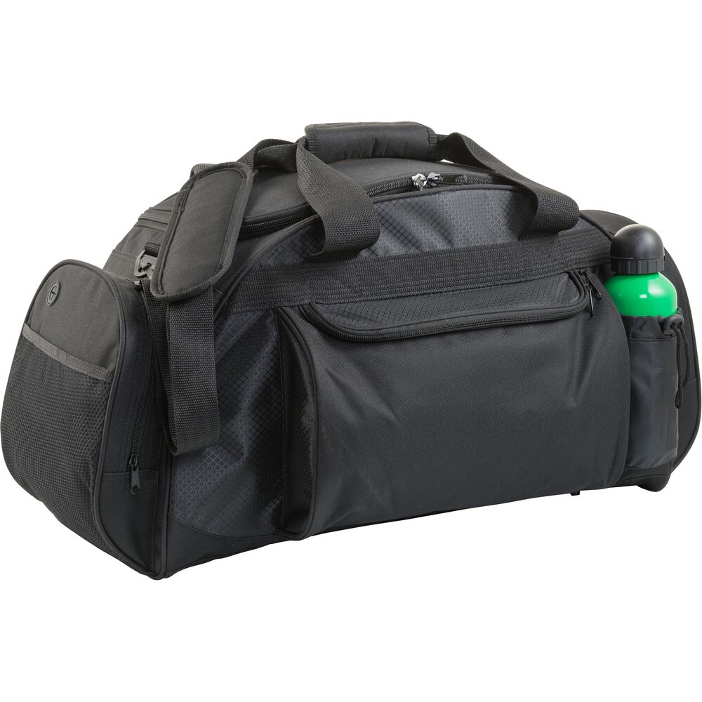 Torba sportowa, podróżna z kieszenią z przodu na zamek, boczna kieszeń na butelkę, kieszonka na słuchawki, kieszeń główna na zamek