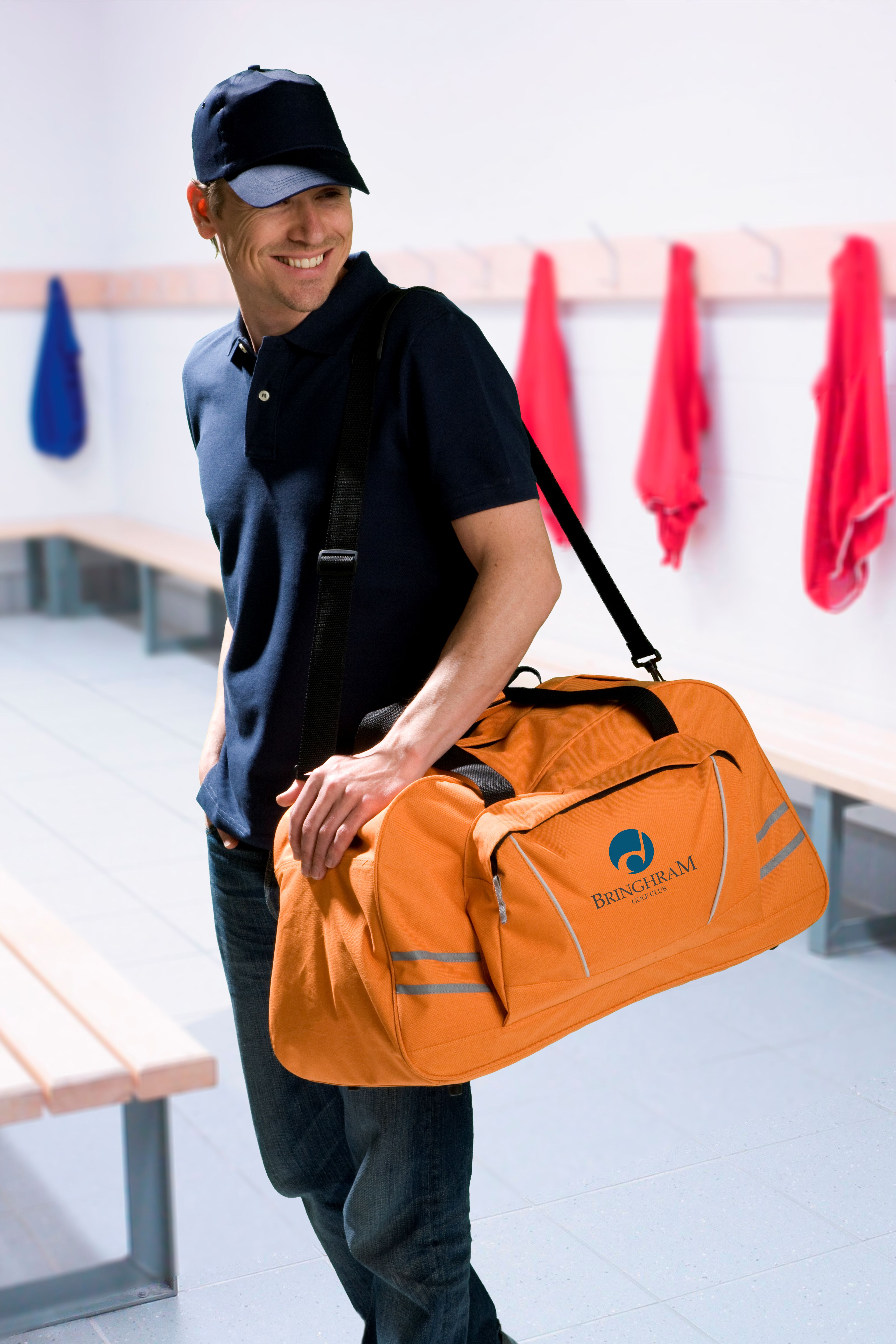 Torba sportowa, podróżna z dużą kieszenią przednią i odblaskowymi paskami, regulowany pasek na ramię