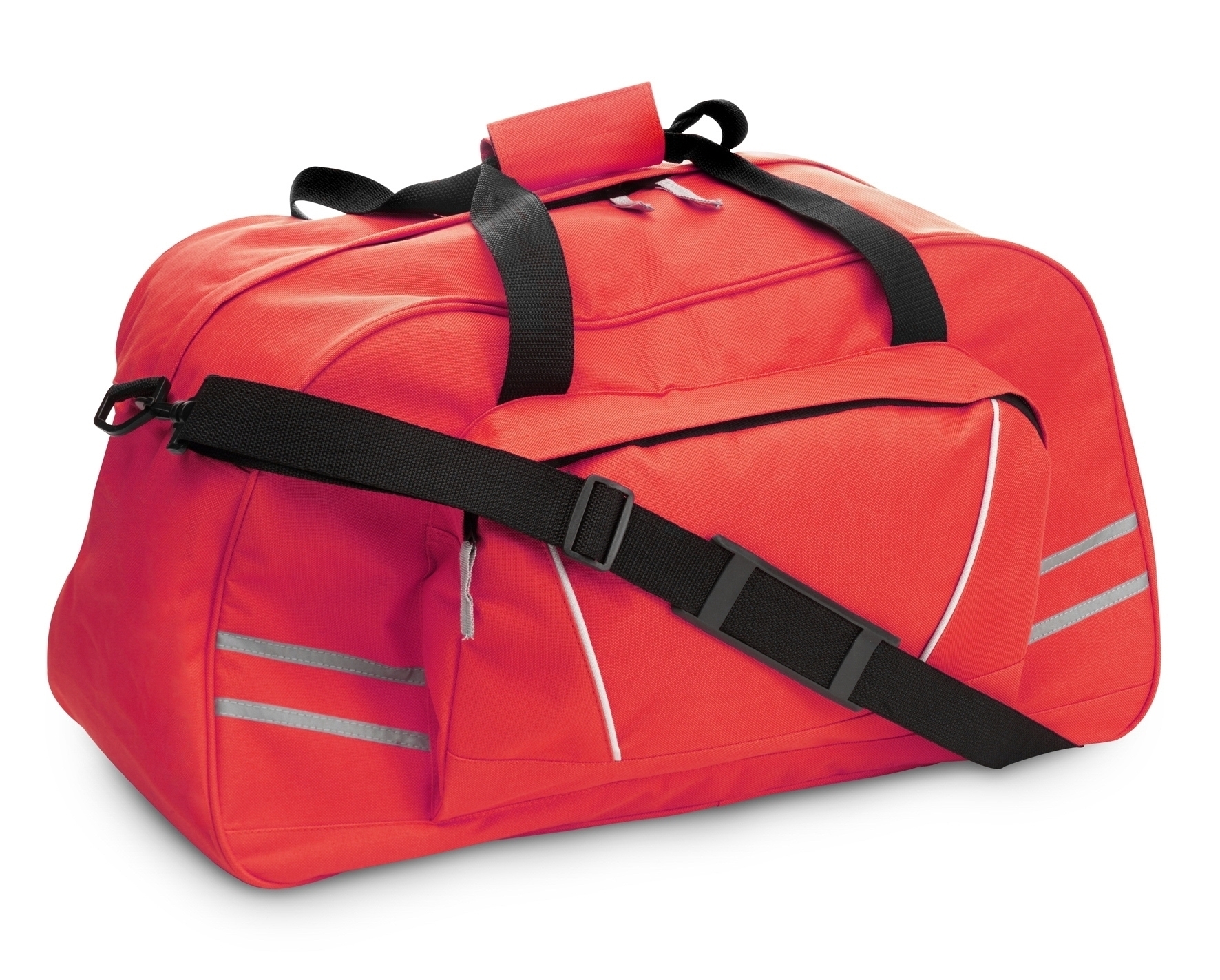 Torba sportowa, podróżna z dużą kieszenią przednią i odblaskowymi paskami, regulowany pasek na ramię