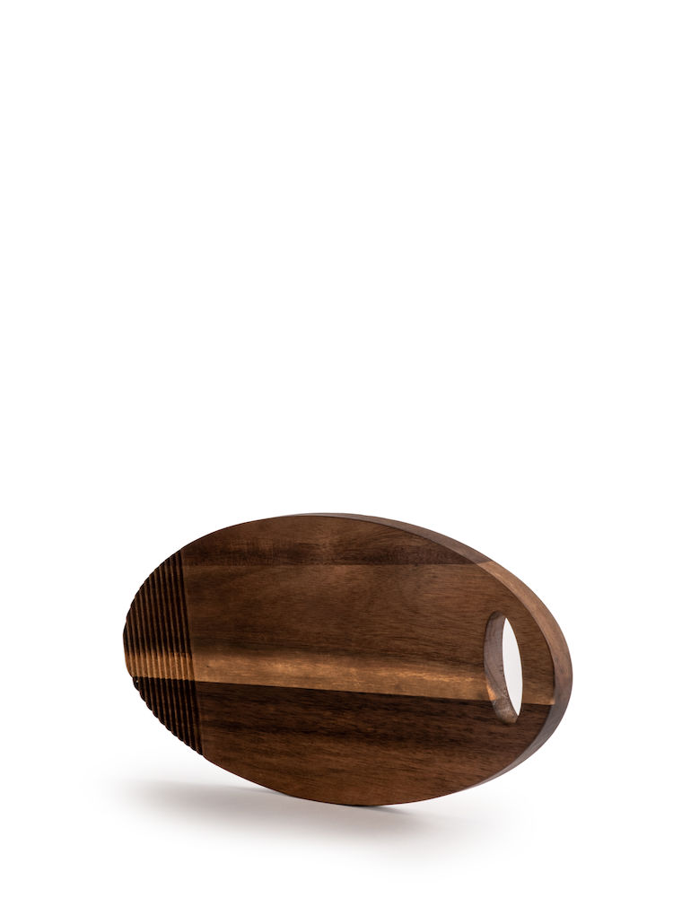 <p>Deska do krojenia z serii Ante wykonana z ciemnego, solidnego drewna akacjowego. Deska ma owalny kształt oraz pięknie rzeźbione paski. Kształt deski sprawia, że Ante jest wyjątkowa, idealna do eksponowania lub serwowania dań. Deska do krojenia Ante jest dostępna w dwóch rozmiarach, jest wykonana ręcznie, dlatego każ∂y egzemplarz jest jedyny w swoim rodzaju. Warto wiedzieć, że drewniane deski do krojenia są trwalsze, a także delikatniejsze dla noży.</p> <p> </p> <p>Art.nr: 5018381<br /> Projektant: Studio Sagaform<br /> Materiał: Certyfikowane drewno akacjowe<br /> Info: Nie myć w zmywarce<br /> Kolor: Ciemny brąz<br /> Rozmiar: 50x22,5x2cm<br /> Opakowanie: Girdle</p> <p> </p>