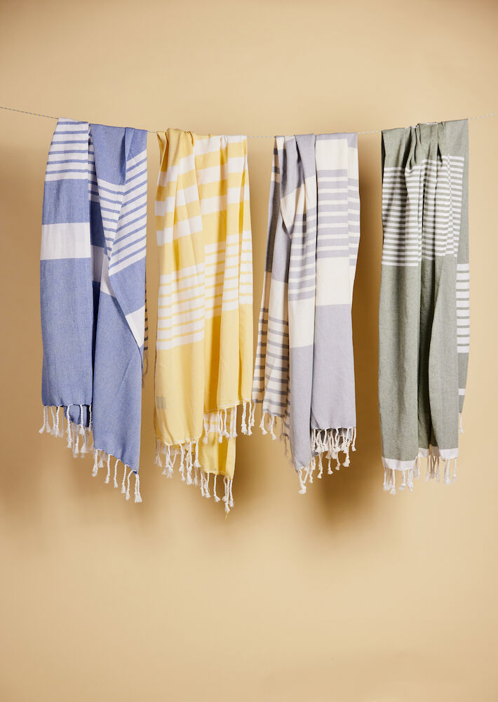 <p>Ella Hamam to klasycznie wzorowany ręcznik z frędzlami, wykonany z cienko tkanej bawełny z recyklingu (70%) i poliestru (30%). Wzory w paski są charakterystyczne dla Sagaform, z różnymi wzorami dla różnych kolorów. Dostępny w delikatnych odcieniach niebieskiego, zielonego, żółtego i szarego. Szybko schnie i łatwo się wiesza. Wygodny do zwinięcia i zabrania na plażę, basen czy do torby na siłownię. Dobrze komponuje się z Eden Hamam. Dostępny w rozmiarach 50x70 cm, 90x170 cm i 145x250 cm. Opakowany w ładny kartonowy pas.</p> <p> </p> <p>Nr art: 5018465</p> <p>Rozmiar: 90 x 170 cm</p> <p>70% Bawełna z recyklingu, 30% Poliester</p>