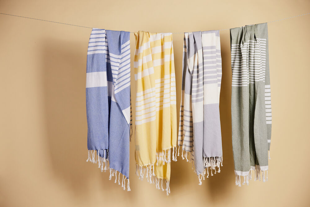 <p>Ella Hamam to klasycznie wzorowany ręcznik z frędzlami, wykonany z cienko tkanej bawełny z recyklingu (70%) i poliestru (30%). Wzory w paski są charakterystyczne dla Sagaform, z różnymi wzorami dla różnych kolorów. Dostępny w delikatnych odcieniach niebieskiego, zielonego, żółtego i szarego. Szybko schnie i łatwo się wiesza. Wygodny do zwinięcia i zabrania na plażę, basen czy do torby na siłownię. Dobrze komponuje się z Eden Hamam. Dostępny w rozmiarach 50x70 cm, 90x170 cm i 145x250 cm. Opakowany w ładny kartonowy pas.</p> <p> </p> <p>Nr art: 5018466</p> <p>Rozmiar: 90 x 170 cm</p> <p>70% Bawełna z recyklingu, 30% Poliester</p>