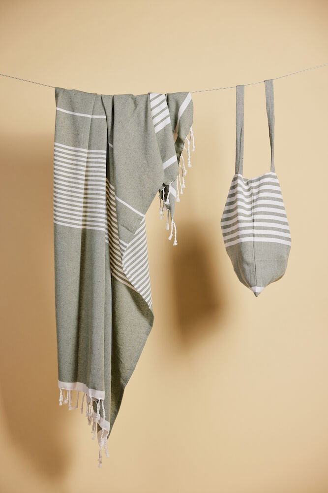<p>Ella Hamam to klasycznie wzorowany ręcznik z frędzlami, wykonany z cienko tkanej bawełny z recyklingu (70%) i poliestru (30%). Wzory w paski są charakterystyczne dla Sagaform, z różnymi wzorami dla różnych kolorów. Dostępny w delikatnych odcieniach niebieskiego, zielonego, żółtego i szarego. Szybko schnie i łatwo się wiesza. Wygodny do zwinięcia i zabrania na plażę, basen czy do torby na siłownię. Dobrze komponuje się z Eden Hamam. Dostępny w rozmiarach 50x70 cm, 90x170 cm i 145x250 cm. Opakowany w ładny kartonowy pas.</p> <p> </p> <p>Nr art: 5018467</p> <p>Rozmiar: 90 x 170 cm</p> <p>70% Bawełna z recyklingu, 30% Poliester</p>