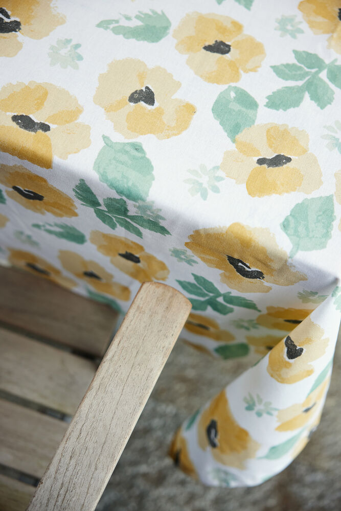 <p>Obrus Eden woskowany jest pięknie wzorzysty i wykonany z bawełny z recyklingu (70%) i poliestru (30%). Woskowana powierzchnia sprawia, że obrus jest odporny na wodę i dlatego doskonale nadaje się do użytku zarówno na zewnątrz, jak i wewnątrz. Wzór jest starannie wykonany z malowanych kwiatów w delikatnych pastelowych żółtych i beżowych kolorach. Dostępny w rozmiarze 150x250 cm. Zapakowany w ładną papierową opaskę.</p> <p> </p> <p>Nr Art. 5018485</p> <p>Materiał: 70% bawełna z recyklingu, 30% poliester</p> <p>Rozmiar: 150x250 cm</p> <p>Kolor: Żółty</p>