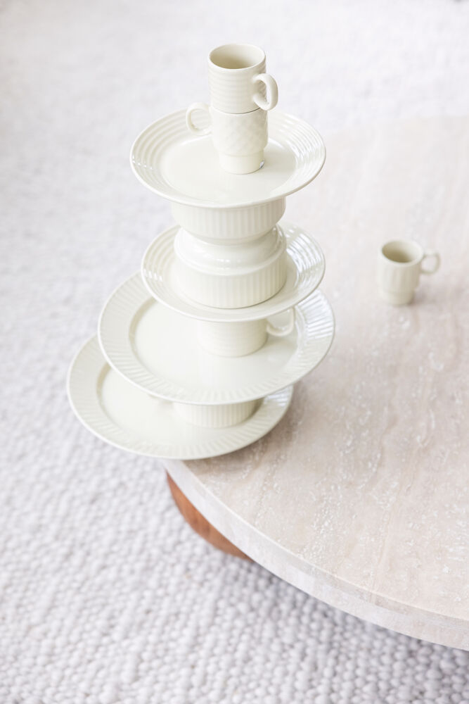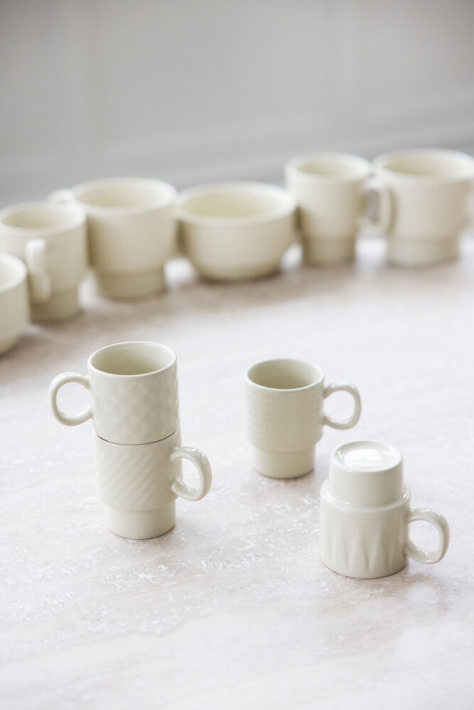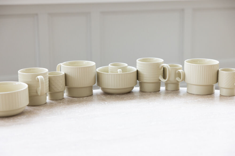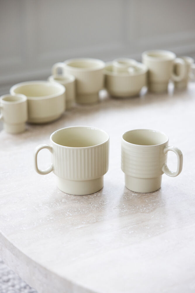 <p>Zestaw 2 sztaplowanych kubków do herbaty z kamionki z charakterystycznym reliefem w pięknym, inspirowanym naturą kolorze. Miękki beżowy odcień doskonale komponuje się z pozostałymi kolorami serii, ale wyróżnia się także samodzielnie. Idealne na codzienną filiżankę herbaty, z detalicznymi wzorami i liniami, które tworzą poczucie domowego ciepła i bezpieczeństwa. Kubki są częścią serii Coffee & More, stworzonej we współpracy z Margot Barolo dla marki Sagaform. Nadają się do mycia w zmywarce i są bezpieczne dla żywności.</p> <p> </p> <p>Materiał: Kamionka</p> <p>Rozmiar: ø10 cm, wys. 9 cm, 50 cl</p> <p>waga: 400 g</p>