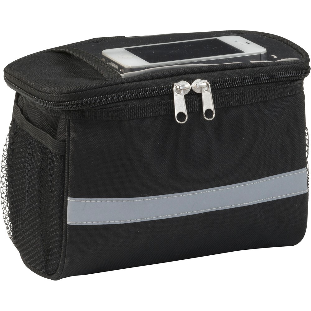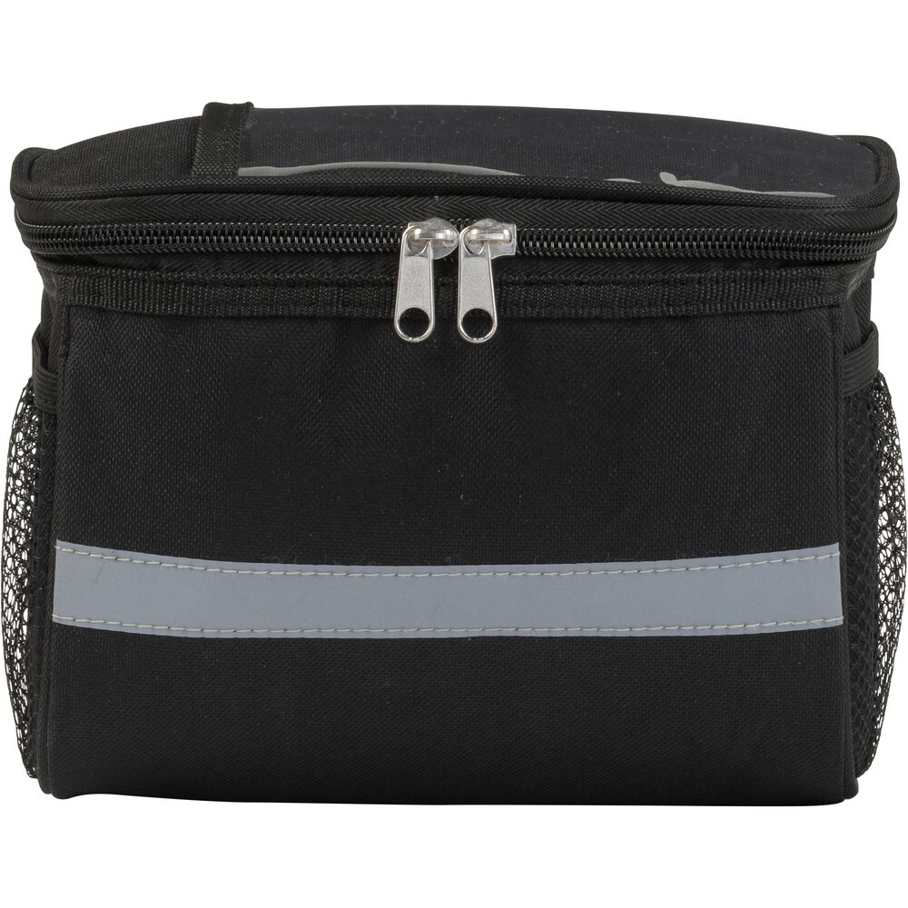Rowerowa torba termoizolacyjna na zamek, na górze kieszeń PVC, odblaskowy pasek, siateczkowe kieszenie po bokach