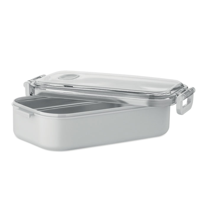 Lunchbox z PP z dodatkową warstwą wewnętrzną z recyklingowanej stali nierdzewnej. Szczelna pokrywa AS zapewnia świeżość i bezpieczeństwo żywności. Pojemność 750 ml bez tacki i 650 ml z tacką.