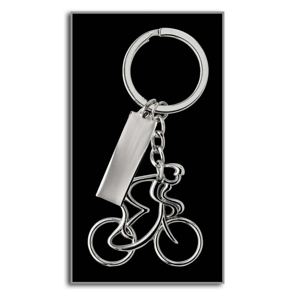 Brelok do kluczy "rowerzysta" z prostokątną plakietką na personalizację, w pudełku