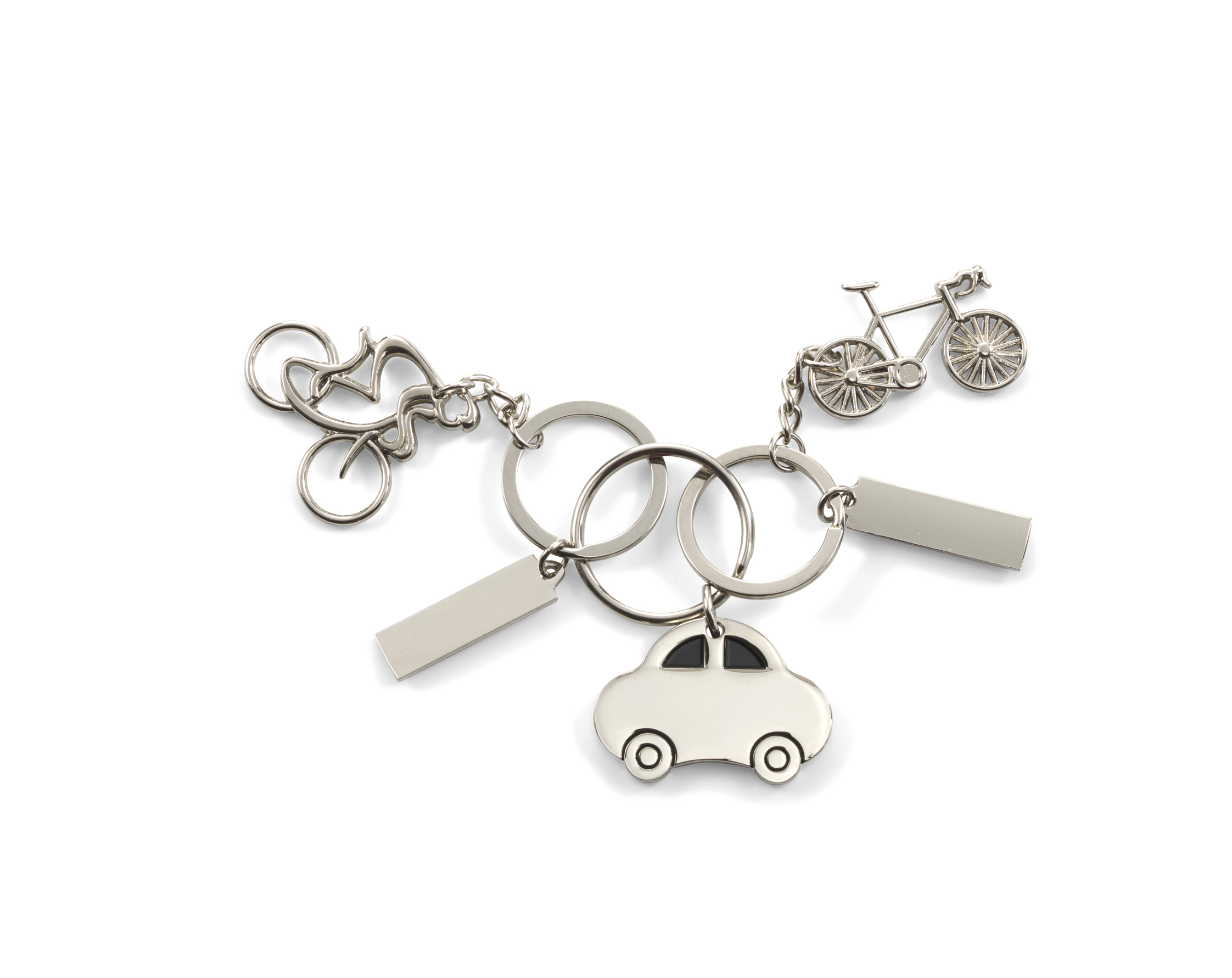 Brelok do kluczy "rower" z prostokątną plakietką na personalizację, w pudełku