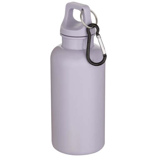 Oregon butelka na wodę o pojemności 400 ml z w jednolitym kolorze z karabińczykiem, wykonana z tworzyw sztucznych pochodzących z recyklingu z certyfikatem RCS / Liliowy