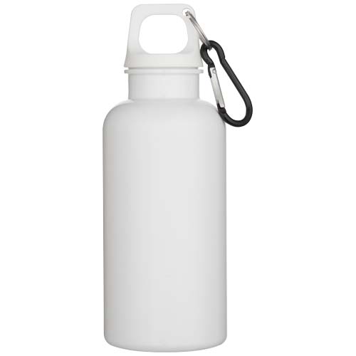 Oregon butelka na wodę o pojemności 400 ml z w jednolitym kolorze z karabińczykiem, wykonana z tworzyw sztucznych pochodzących z recyklingu z certyfikatem RCS / Biały 10086301