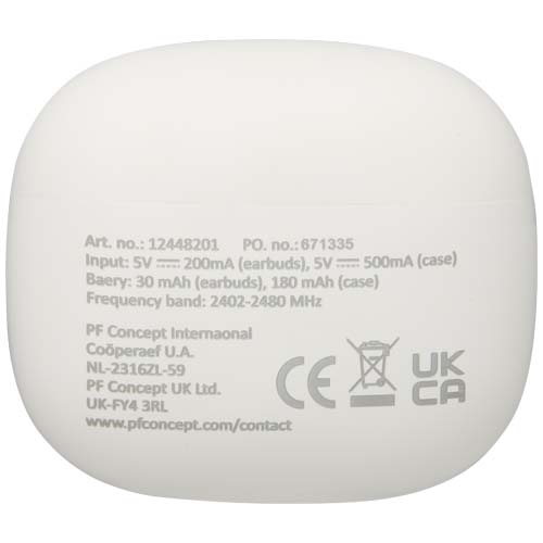 Alterf zestaw słuchawkowy True Wireless z technologią Bluetooth® z tworzyw sztucznych pochodzących z recyklingu i silikonowymi końcówkami dousznymi / Biały