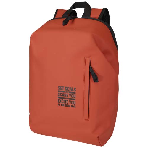 Plecak na laptop 15-calowy wykonany z najwyższej jakości skóry poliuretanowej (PU) z certyfikatem GRS pochodzącej z recyklingu, z podszewką z tworzywa RPET w dopasowanym kolorze, z zabezpieczeniem antykradzieżowym zapewniający ochronę i suchość Twoich rzeczy w podróży. Ma tylną przegrodę na laptopa, dwie opływowe kieszenie boczne i przednią kieszeń zapinaną na suwak z wodoodpornym zamkiem. Oddychający tylny panel gwarantuje całodzienny komfort, dzięki czemu plecak idealnie nadaje się do dojazdów do pracy, podróży i miejskich przygód. Pojemność: 18 litrów.