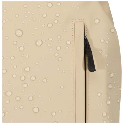 Plecak na laptop 15-calowy wykonany z najwyższej jakości skóry poliuretanowej (PU) z certyfikatem GRS pochodzącej z recyklingu, z podszewką z tworzywa RPET w dopasowanym kolorze, z zabezpieczeniem antykradzieżowym zapewniający ochronę i suchość Twoich rzeczy w podróży. Ma tylną przegrodę na laptopa, dwie opływowe kieszenie boczne i przednią kieszeń zapinaną na suwak z wodoodpornym zamkiem. Oddychający tylny panel gwarantuje całodzienny komfort, dzięki czemu plecak idealnie nadaje się do dojazdów do pracy, podróży i miejskich przygód. Pojemność: 18 litrów.