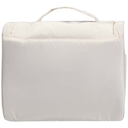 Zawieszana kosmetyczka Puffer została wykonana z materiałów pochodzących z recyklingu z certyfikatem GRS, i wyróżnia się wyjątkowym designem, co zapewnia wygodę użytkowania na co dzień. Ta 8-litrowa kosmetyczka posiada pojemną komorę główną z sześcioma wewnętrznymi kieszeniami, dwie zewnętrzne kieszenie boczne i poręczny haczyk do zawieszenia na drzwiach lub wieszakach na ręczniki. Wyściełany uchwyt ułatwia przenoszenie, a charakterystyczna puchowa wyściółka podkreśla styl i zapewnia ochronę. To lekka i wodoodporna torba, dzięki której Twoje najważniejsze rzeczy będą uporządkowane i bezpieczne, dokądkolwiek podróżujesz.