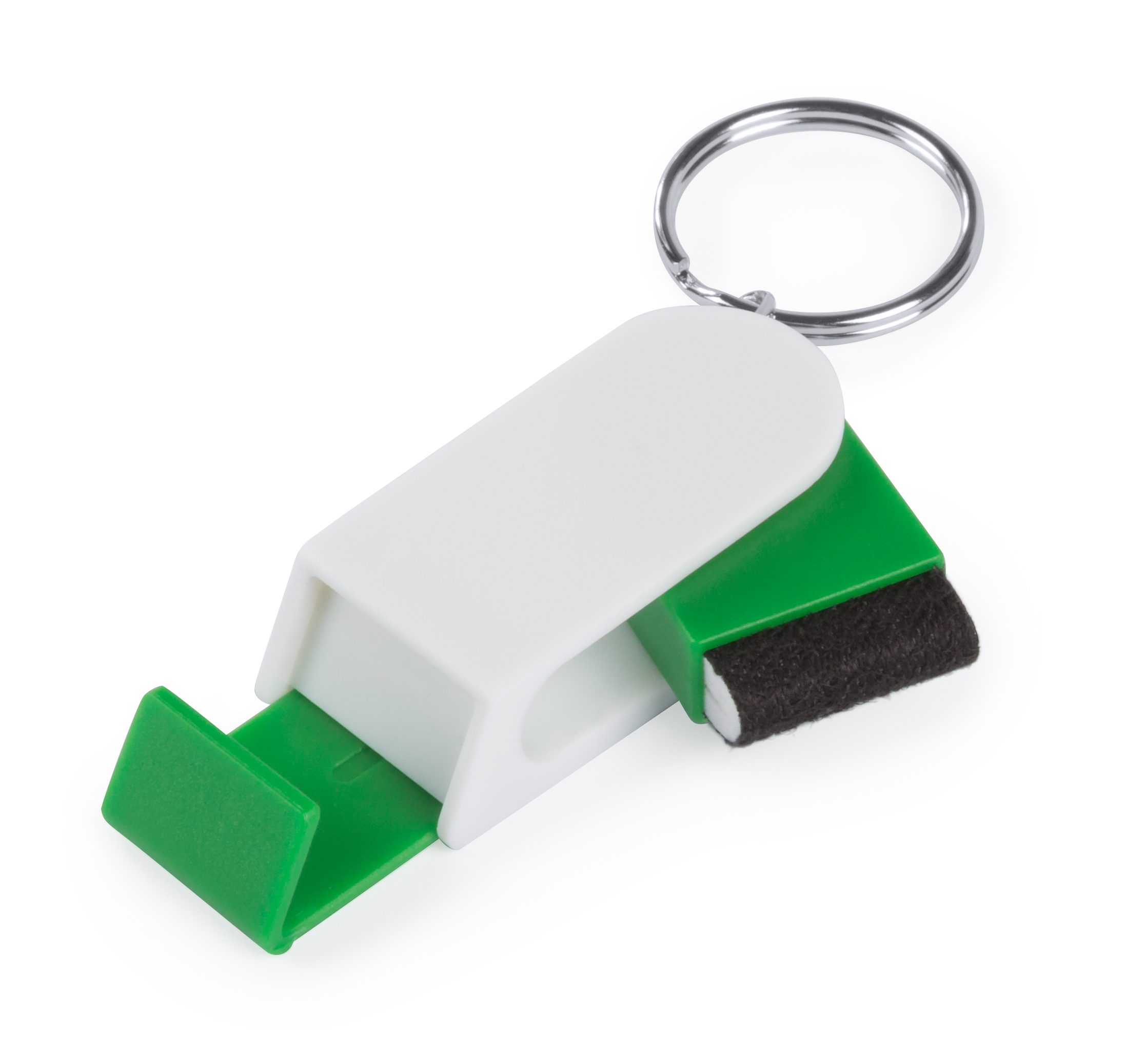Brelok, czyścik do ekranu, stojak na telefon / Zielony