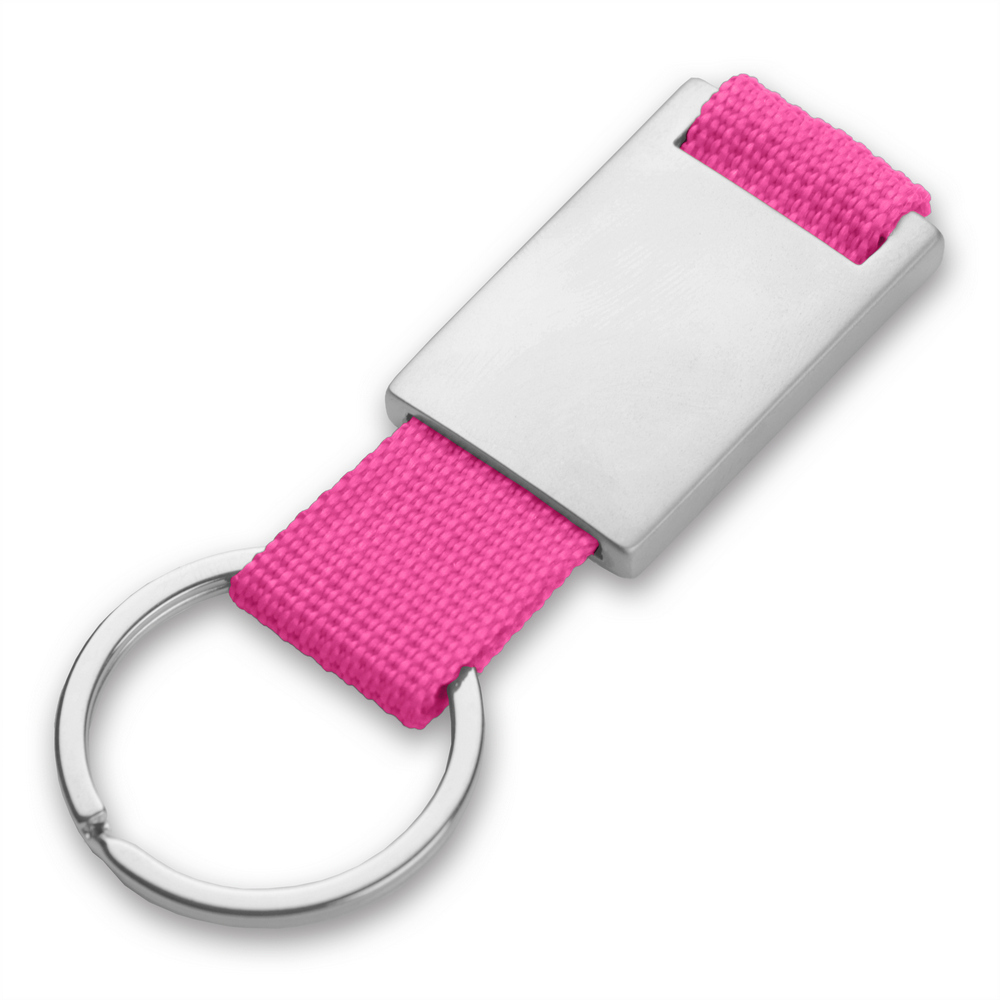 Brelok do kluczy z metalową plakietką | Preston / Fuksja