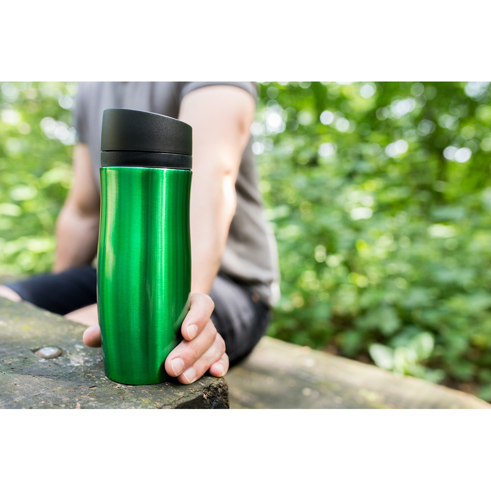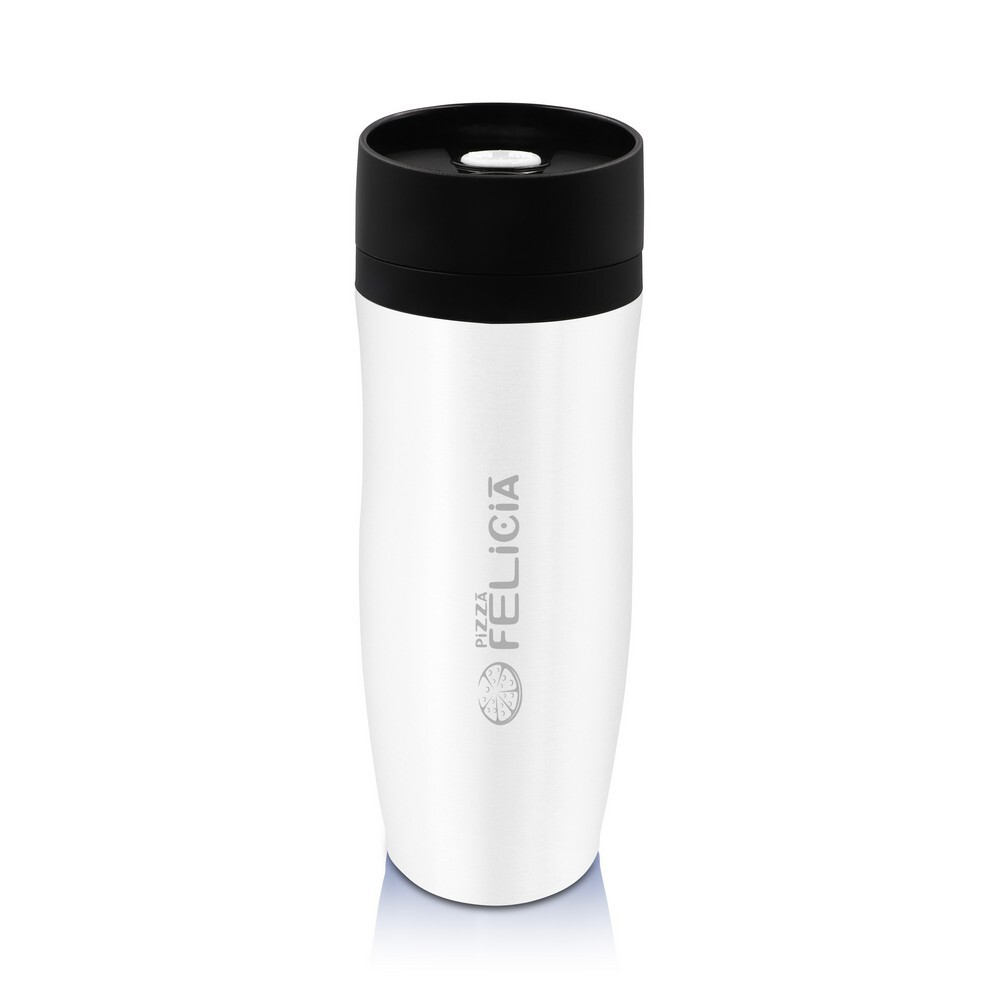 Kubek termiczny 400 ml Air Gifts, miedziana izolacja próżniowa, podwójne ścianki ze stali nierdzewnej z próżnią między ściankami dzięki czemu zachowuje funkcje termosu i długo utrzymuje temperaturę nie oddając jej na zewnątrz, plastikowe wieczko, funkcja push open/close, nie wymaga obsługi oburącz, błyszczące wykończenie, klasa termiczna: A +leakproof