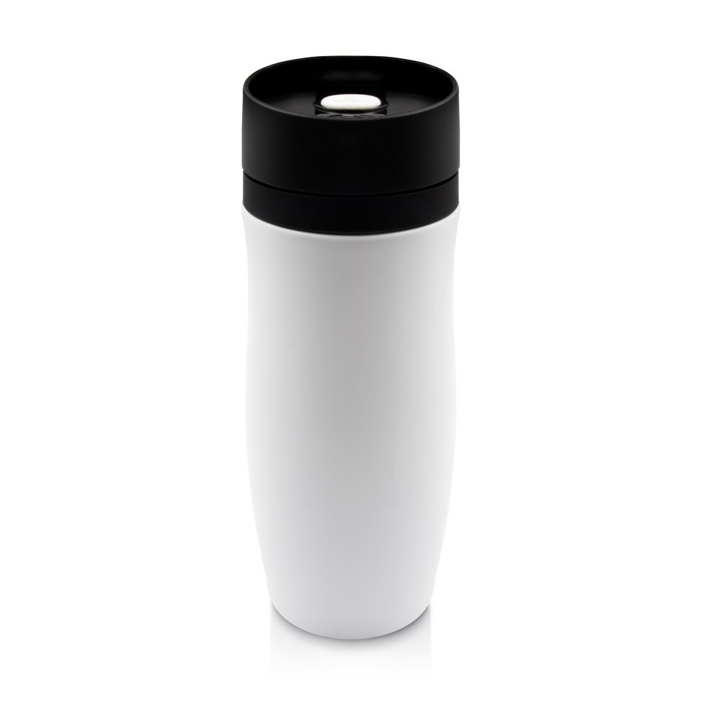 Air Gifts kubek termiczny dostępny w eleganckich kolorach: białym oraz czarnym, został wykonany z wysokiej jakości stali nierdzewnej oraz plastiku, co gwarantuje jakość i bezpieczeństwo. Podwójne ścianki oraz izolacja miedziana utrzymują napoje w idealnej temperaturze przez wiele godzin, niezależnie od warunków zewnętrznych. Dzięki innowacyjnemu korkowi push open/close, używanie kubka jest łatwe, a szczelne zamknięcie minimalizuje ryzyko utraty ciepła lub zimna oraz zapobiega przypadkowemu rozlaniu.