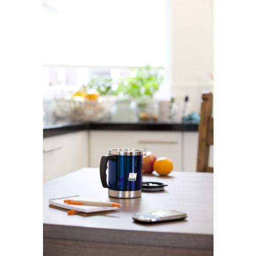 Kubek podróżny 400 ml, podwójne ścianki, wnętrze ze stali nierdzewnej, plastikowa rączka i wieczko