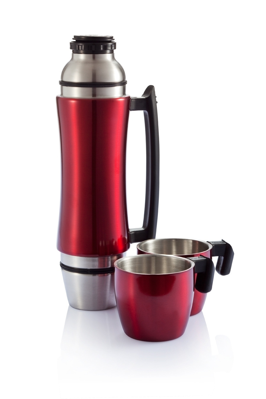 Termos 700 ml z uchwytem, 2 kubki / Czerwony