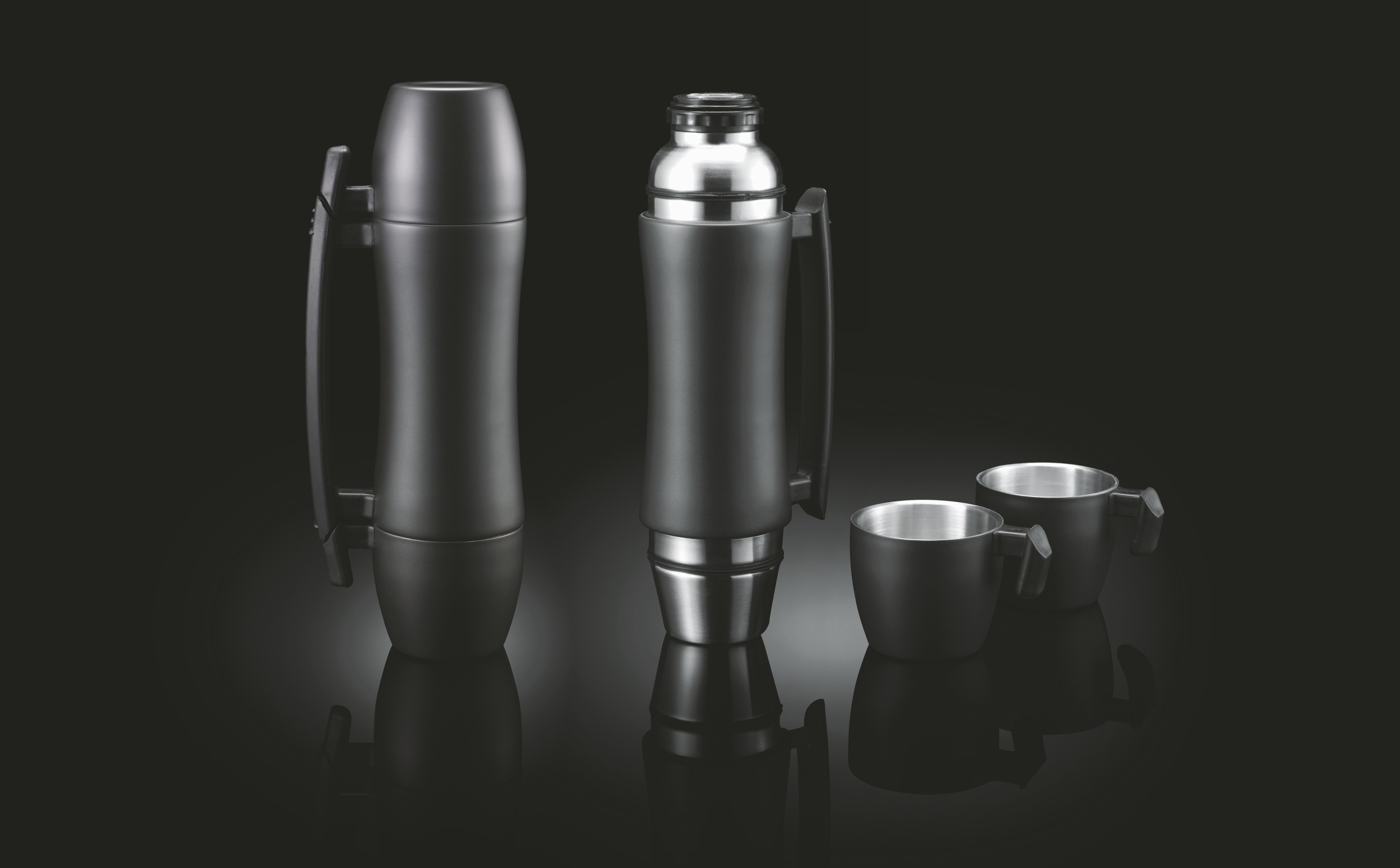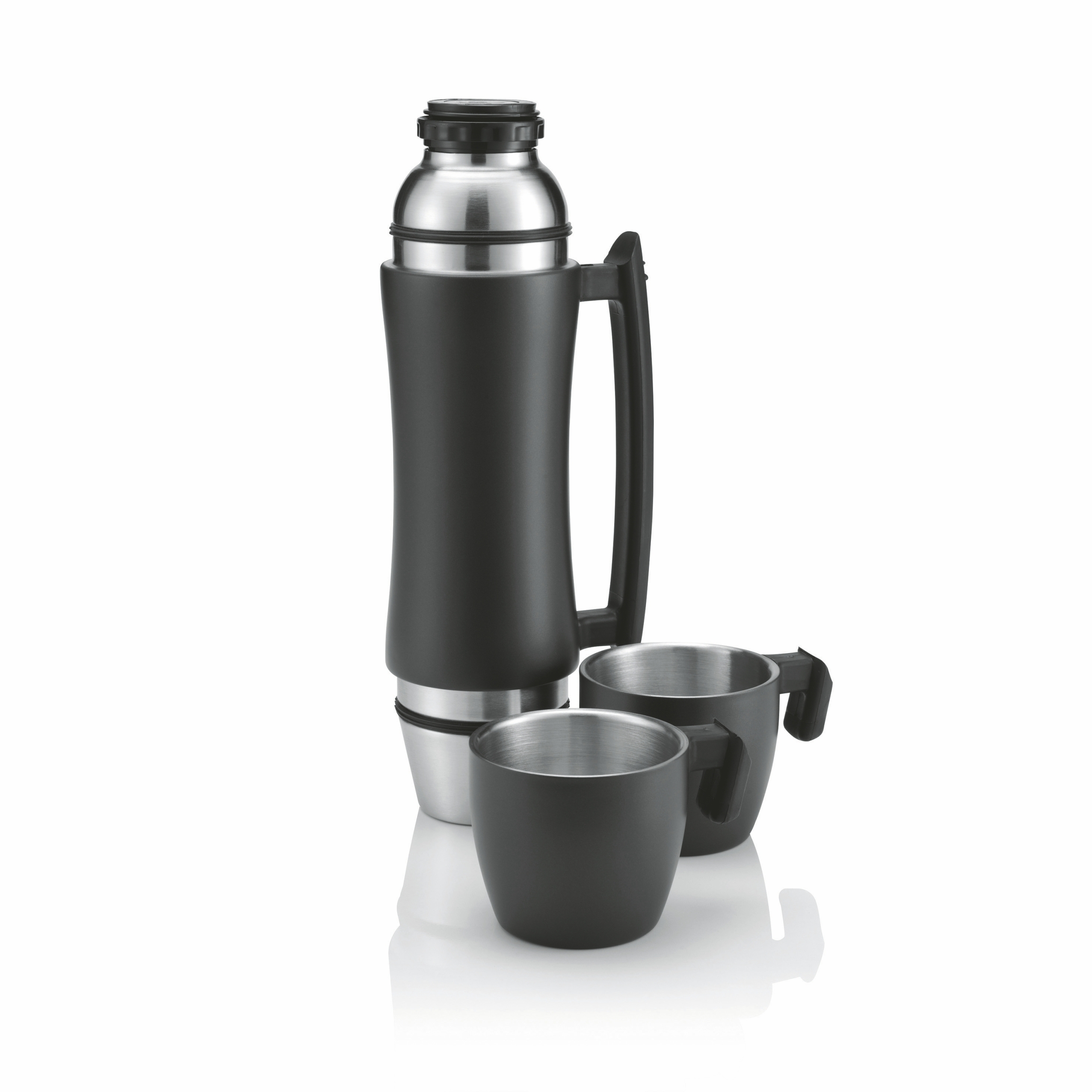 Termos 700 ml z uchwytem, 2 kubki / Czarny